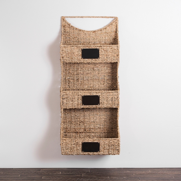 Country Rustic Gray 2 Tier Wall Storage Baskets Magazine Rack File Organizer W Chalkboard Labels