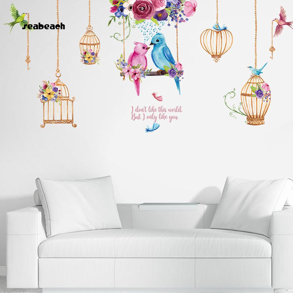 Seabeach Fashion Birdcage Bird Flower Wall Sticker Home Bedroom