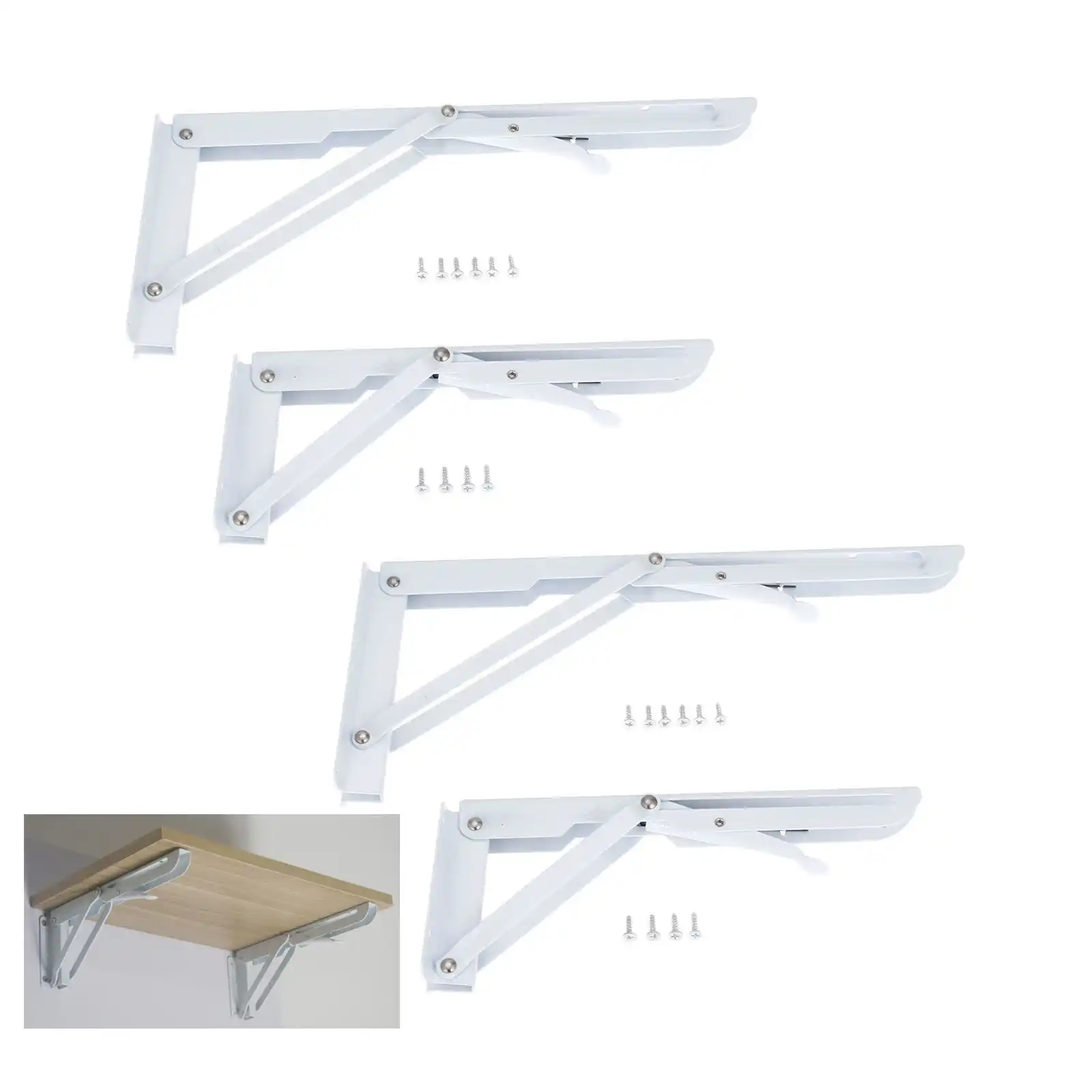 2pcs White Folding Angle Bracket Adjustable Wall Mounted Durable