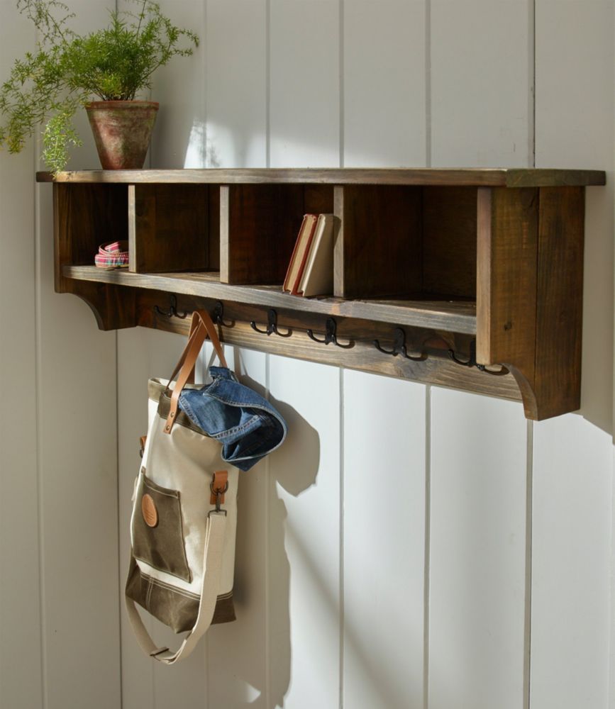 Amish Traditional Hanging Wall Shelf With Storage And Coat Hooks