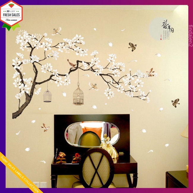 187x128cm Large Size Tree Wall Stickers Birds Flower Home Decor Wallpapers For Living Room Bedroom Shopee Indonesia