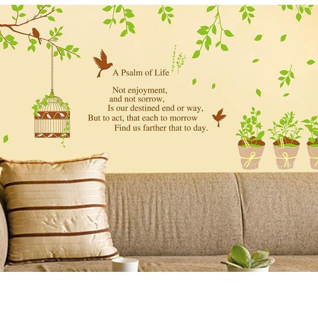 Wall Sticker Jm7259 Leaves 3 Cages Stiker Dinding Untuk Dekorasi Kamar Anak Sticker Dinding Murah