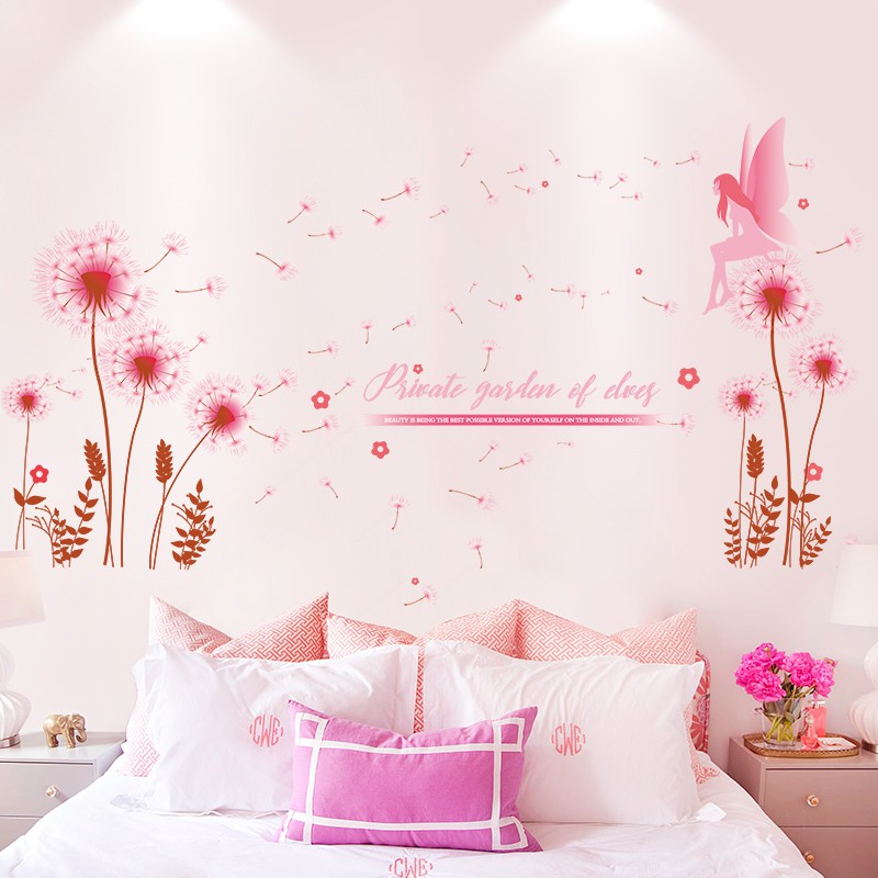 Pink Girl Heart Ins Dandelion Wall Stickers Girls Bedroom Bedroom