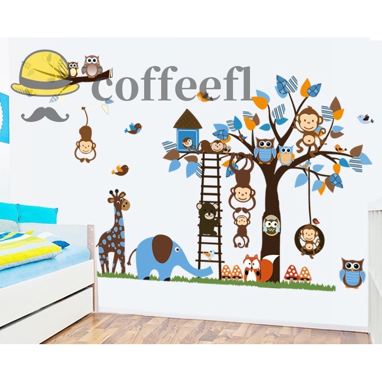 Forest Animal Monkey Owls Tree Wall Sticker For Kids Room Vinyl