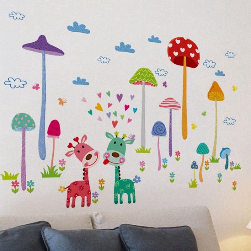 Giraffe Mushroom Tree Wall Stickers Kids Bedroom Nursery Home
