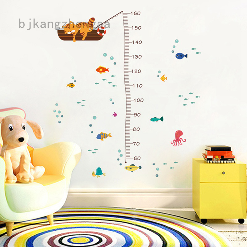 Cute Tiger Animals Stack Height Measure Wall Stickers Decal Kids Adhes