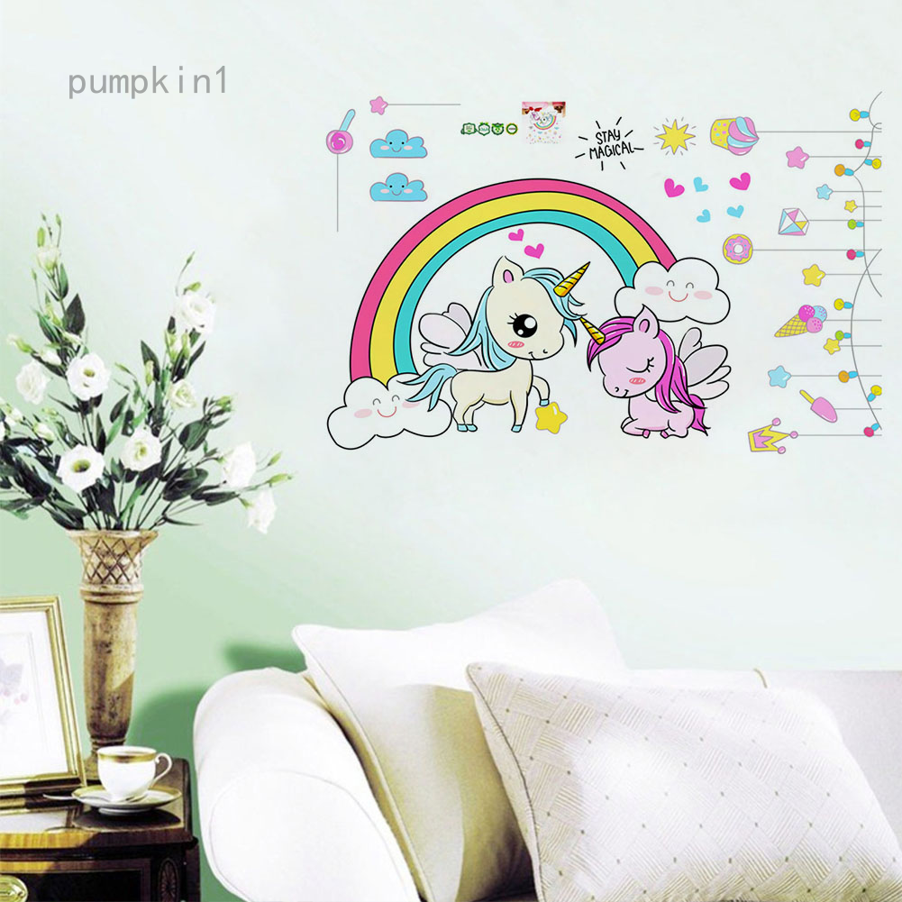 Lovely Unicorn Wall Stickers Rainbow Clouds Kids Girls Bedroom