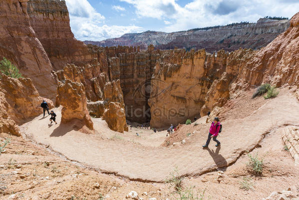 Hikers On Wall Street Section Of Navajo Loop Trail Bryce Canyon