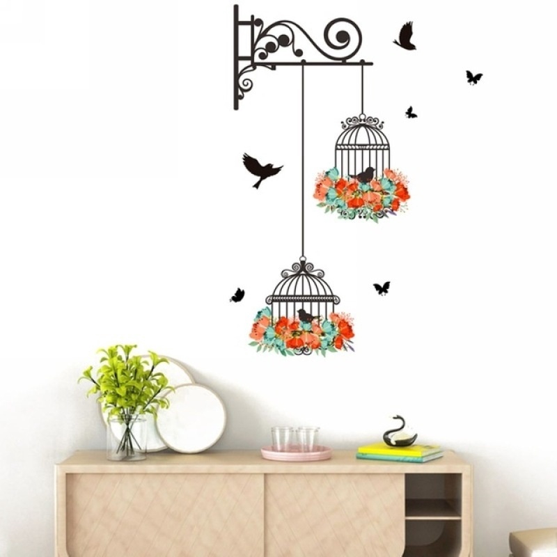 Kids Room Large Birdcage Vines Flowers Mural Wall Stickers Decor Shopee Indonesia