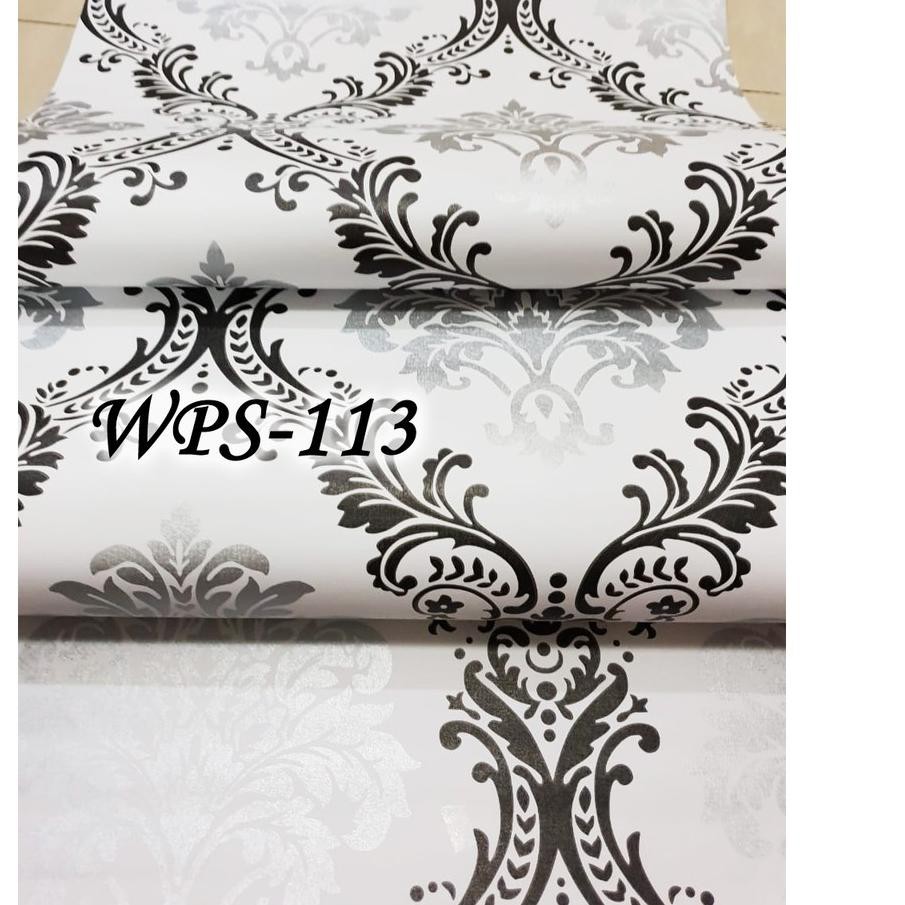 Jual Wps113 White N Cute Black Silver Flower Wallpaper Dinding