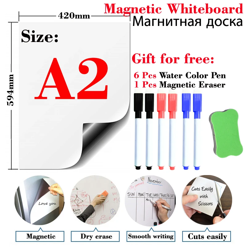 A2 Size Magnetic Whiteboard Sticker Fridge Dry Erase White Board