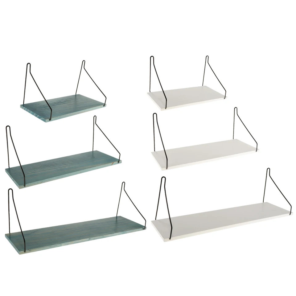 Opak Blue White Wall Mounted Floating Shelves Rustic Metal Storage