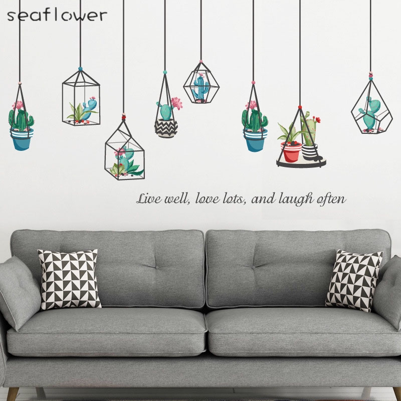 Hanging Baskets Potted Plants Wall Sticker Diy Glass Window
