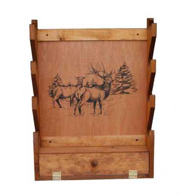 Wall Mounted Single Gun Rack Elk Scene Groo7 Sharp Woodworks