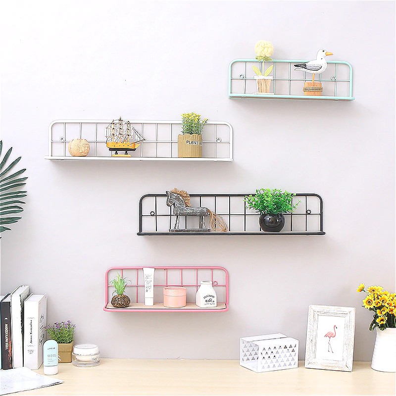 Jual Wooden Iron Wall Shelf Organizer Storage Rack Wall Mounted